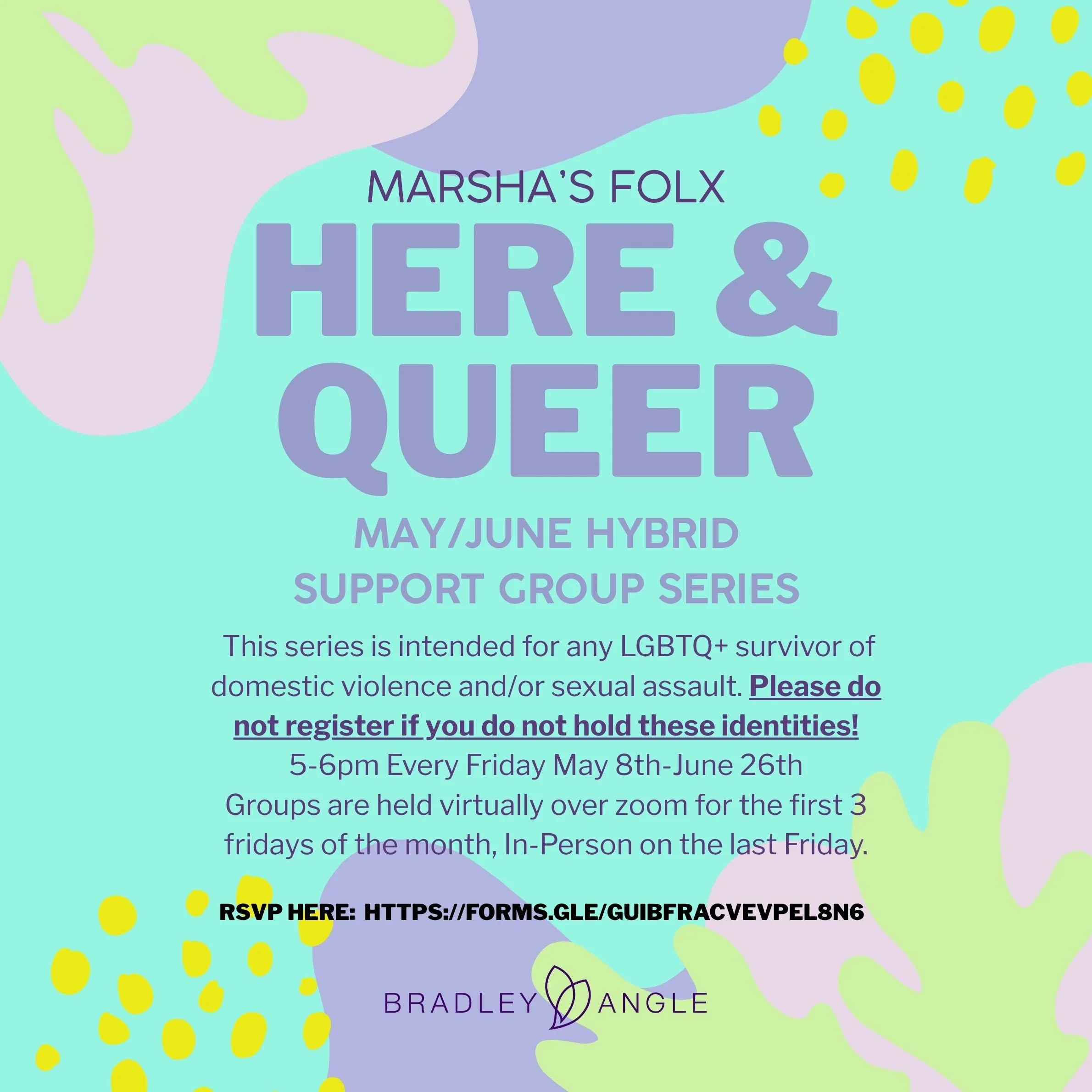 This series is intended for any LGBTQ+ survivor of domestic violence and/or sexual assault. Please do not RSVP if you do not hold these identities.